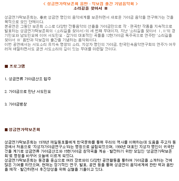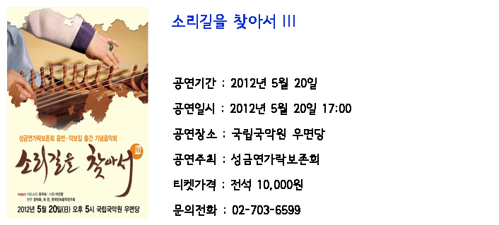 [공연] 성금연가락보존회 음반ㆍ악보집 출간 기념음악회 - 소리길을 찾아서 III