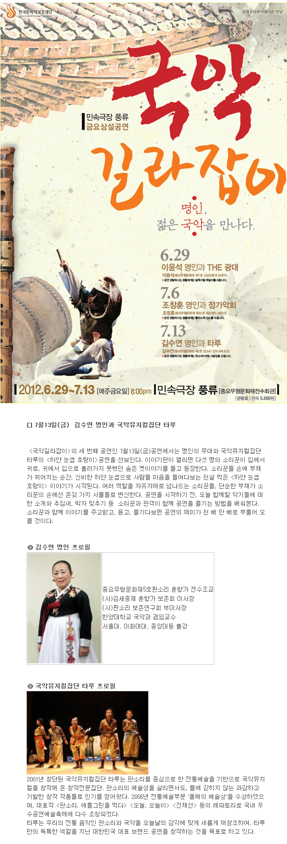 [공연] 국악길라잡이 - 김수연 명인과 타루