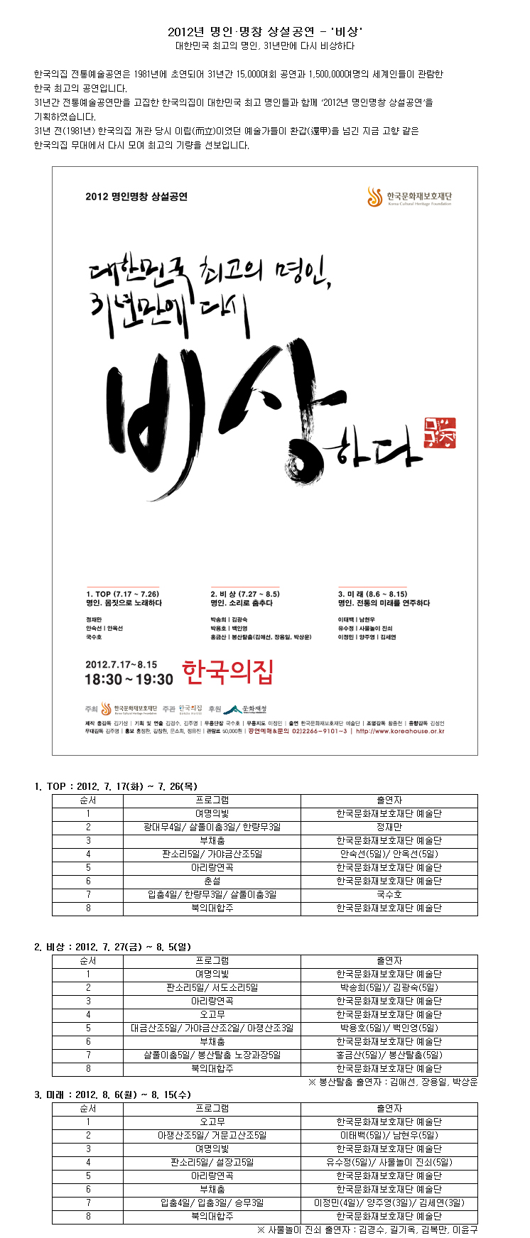 [공연] 2012 명인명창 상설공연 - 비상
