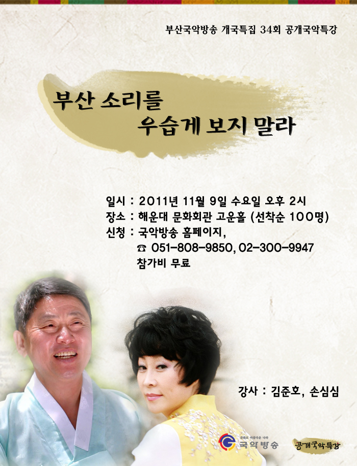 부산 소리를 우습게 보지 말라 공개국악특강 안내