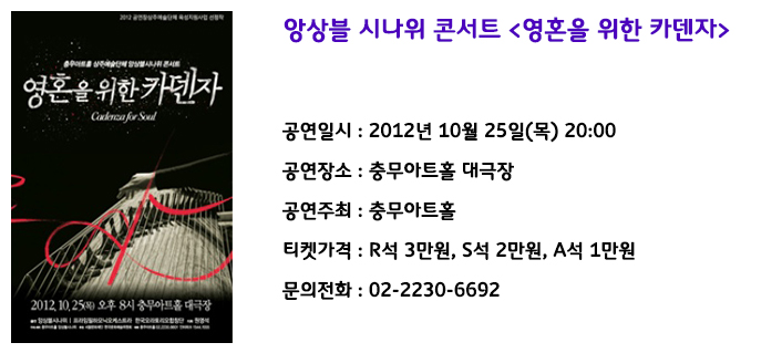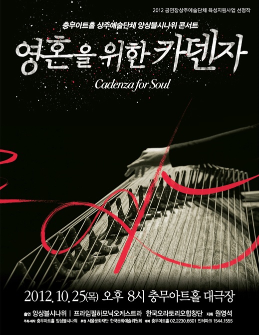 다. 이번 앙상블시나위콘서트 “영혼을 위한 카덴자”는 앙상블시나위의 음악적 색채가 뚜렷한 창작곡들을 오케스트라와의 협연
