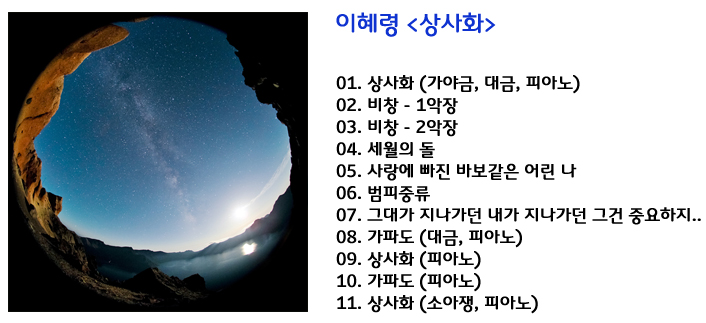 1. 상사화-꿈 속에서 님을 찾아 헤메였으나 결국은 못 만나고 꿈에서 깨어 버린 것을 음악으로 표현.