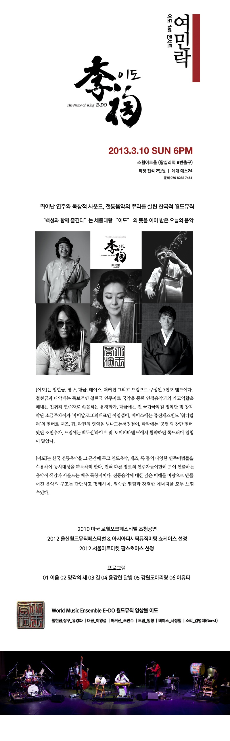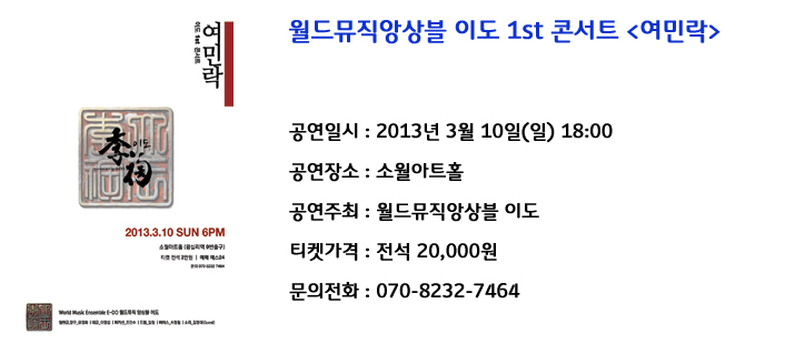 [공연] 월드뮤직앙상블 이도 1st 콘서트 여민락