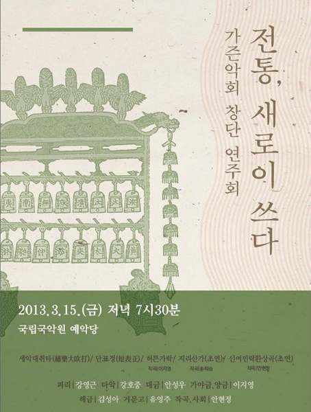 작곡-안현정, 피리-강영근, 대금-안성우, 18현금,양금-이지영, 거문고-유영주, 해금-김성아, 장구-강호중