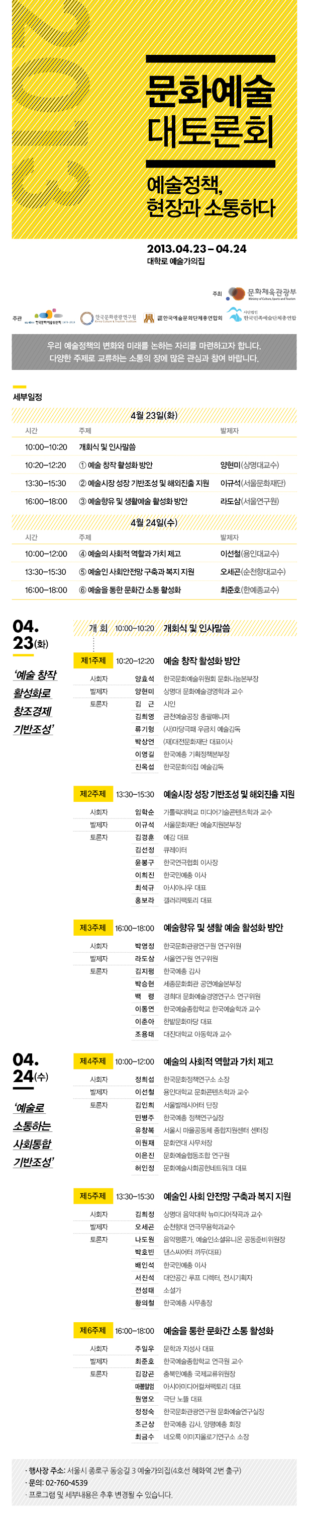 [토론회] 문화예술 대토론회 예술정책, 현장과 소통하다