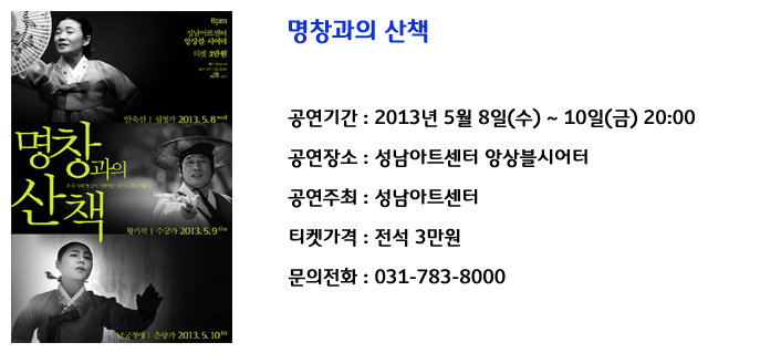 ‘따뜻한 가족애’가 감도는 5월, 시대를 대표하는 명창들이 나섰다. 우리 판소리 다섯 바탕 가운데에서 <심청가>, <수궁가>, <춘향가>를 전한다. 판소리에 대한 기록이 남아 있는 ‘만화집’에는 판소리 열 두 바탕이 기록되어 있다. 그러나 대중의 갈채 속에 온전히 남아 전해오는 이야기는 <춘향가>, <흥부가>, <적벽가>, <심청가>, <수궁가> 다섯 바탕이다. 이번 무대는 그 중에서도 ‘사랑’과 ‘연민’의 교훈을 담고 있는 세 바탕이 무대에 오른다. 각박한 세대에 일침을 할 소리꾼들은 바로, 안숙선·왕기석·남궁정애다.