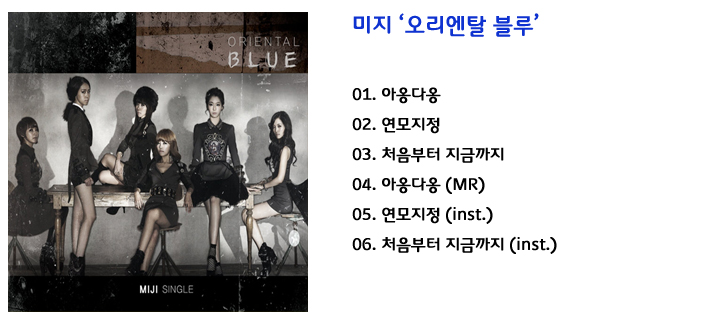 국악의 대중화에 앞장서고 있는 미지(MIJI)가 싱글앨범을 발표한다. 2010년 1집 정규 앨범 [The Challenge]가 국악의 고급화에 주력 했다면, 이번 앨범 [Oriental Blue]는 국악이 대중음악에 더욱 더 근접하게 다가가 있다.