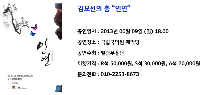 이번 무대에서 김묘선 선생은 거칠고 험한 길을 외로이 눈물로 걸을 때 길 잡이 별을 띄워 이끌어주신 스승, 괄목할 만한 발전으로 패인 주름위로 미소 짓게 해주던 제자들, 아름다운 꽃으로 지며 열매를 남기고 떠난 사랑하는 가족의 이야기들을 무대 위로 하나씩 끌어 올린다. 소중한 사람들의 얼굴 하나, 숨결 하나를 장삼 자락에 살풀이춤 흰 수건에 고이 접어 품고, "인연"이라는 이름으로 묶이게 된 운명에 감사의 춤을 펼친다.