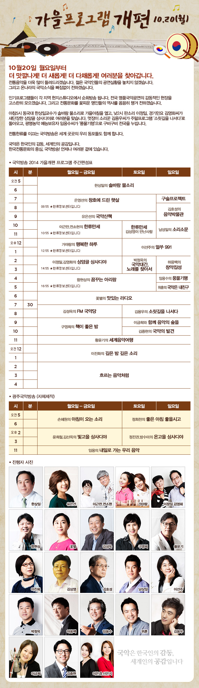 2014 국악방송 가을개편 소식