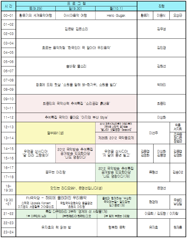 <국악방송 2012 추석 특집 프로그램>을 안내해드립니다