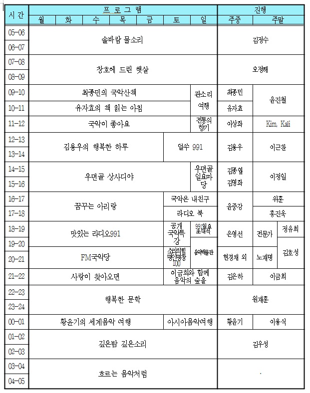 - 흐르는 음악처럼(월~일 03:00~05:00)