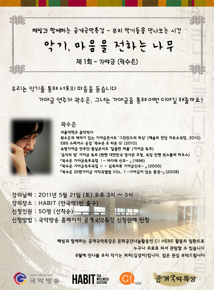 [공개국악특강]곽수은의 악기, 마음을 전하는 나무 방청 신청 안내