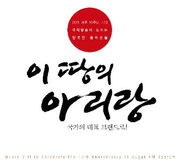 개국 10주년 기념 음반 <이 땅의 아리랑> 앨범에는 그간 국악방송 새음원시리즈 사업을 통해 제작한 10곡이 수록되어 있다. 이 음반은 옛 음악의 다양한 재해석, 숨은 명인명창의 희귀음원, 실력 있는 젊은 음악가의 발굴, 사라지는 토속민요의 복원과 동시대인들과의 공감을 위한 창작, 퓨전음악 등 다양한 음악 콘텐츠를 통해 국악방송의 역사를 함께 느낄 음악여행의 친구가 될 것이다.