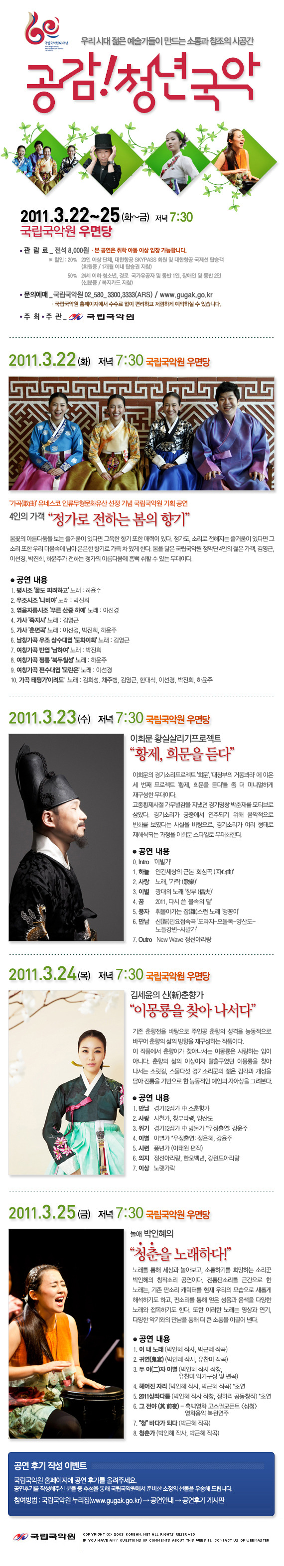 [공연]공감! 청년국악, 4인의 가객 정가로 전하는 봄의 향기