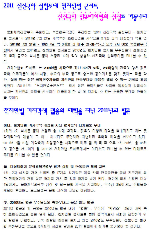 공연,음반,도서,행사 등의 국악계 다양한 소식을 전해드립니다.