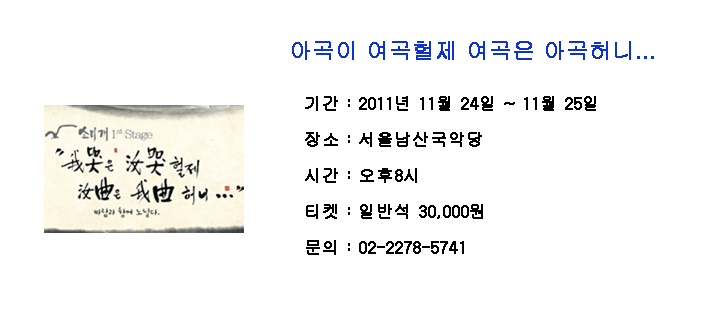 [공연]아곡이 여곡헐제 여곡은 아곡허니...
