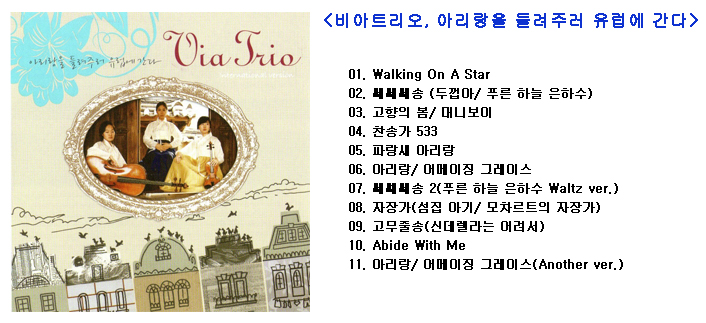 바로 “비아트리오 international version 아리랑을 들려주러 유럽에 간다”. 라는 긴 제목의 앨범입니다.
