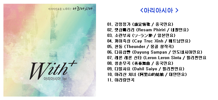 아시아민요 앨범을 통해 우리나라 국악계가 우리의 것에 머무르지 않고 아시아로, 세계로 뻗어나가는 모습을 볼 수 있다. 아시아민요와 어우러져 하나가 되는 모습을 음반의 제목 [With +]가 상징한다. 세계 곳곳에서 한류가 일어나고 있는 이 때 아리아시아의 앨범은 한국과 아시아의 정서를 세계에 널리 알릴 수 있는 일이다.