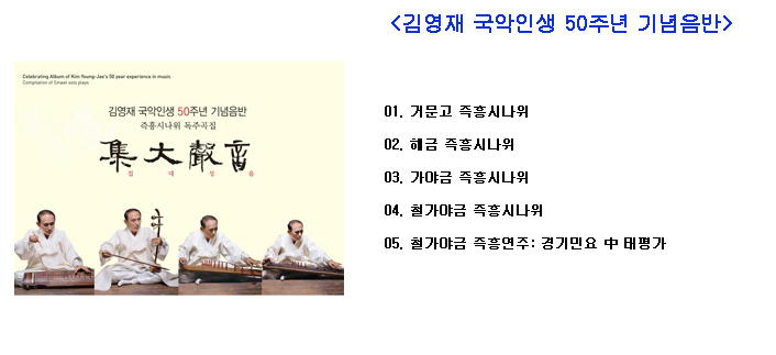 본 음반에 수록된 곡들은 김영재 선생이 평소에 시나위를 바탕으로 즐겨 타던 곡들을 즉흥으로 녹음한 음반이다.