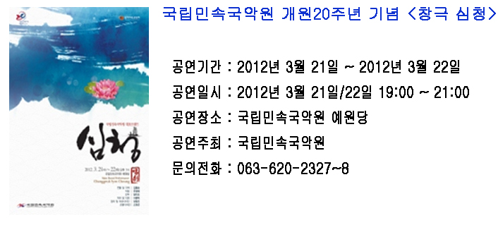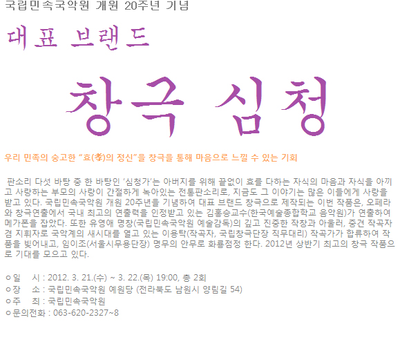 [공연]국립민속국악원 개원20주년 기념 창극 심청