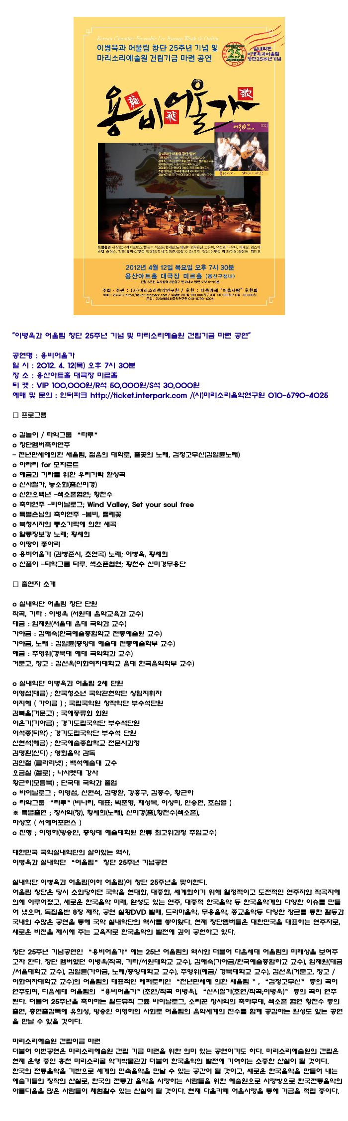 [공연]실내악단 이병욱과 어울림 용비어천가