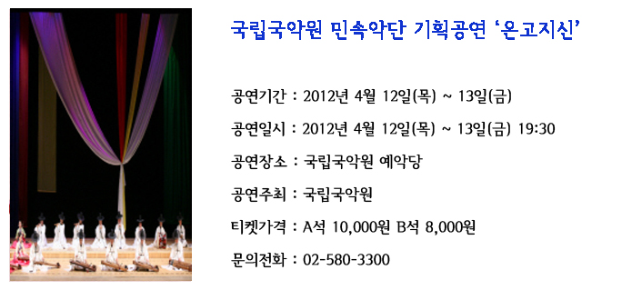 [공연]국립국악원 민속악단 기획공연 온고지신