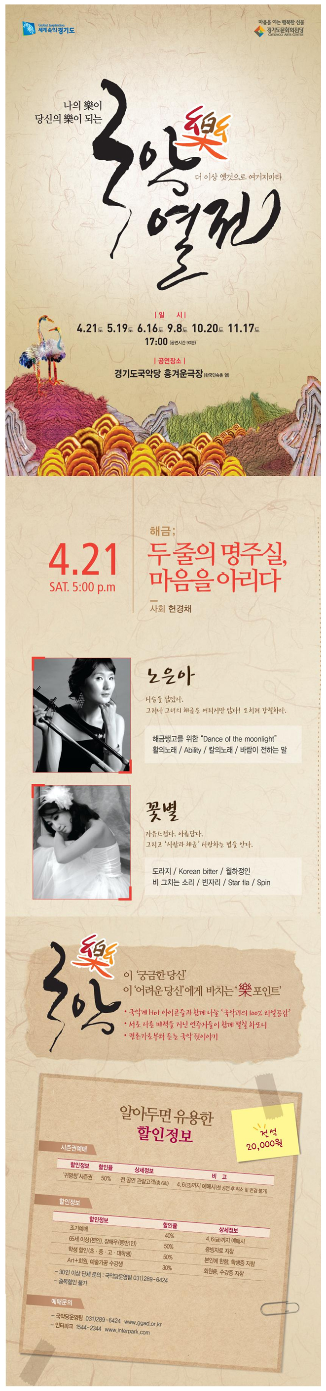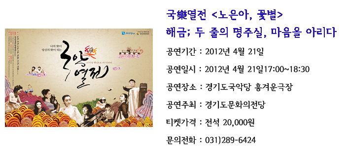 [공연] 국樂열전-해금 두 줄의 명주실,마음을 아리다 노은아, 꽃별